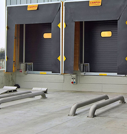 Si posizionano davanti alla baia d’attracco in modo da guidare l’esterno delle ruote dei veicoli per ottenere un centraggio perfetto (tolleranza 10 cm) e la salvaguardia delle attrezzature. La distanza di fissaggio dalla baia di carico dipende dal tipo di mezzi che attraccano.